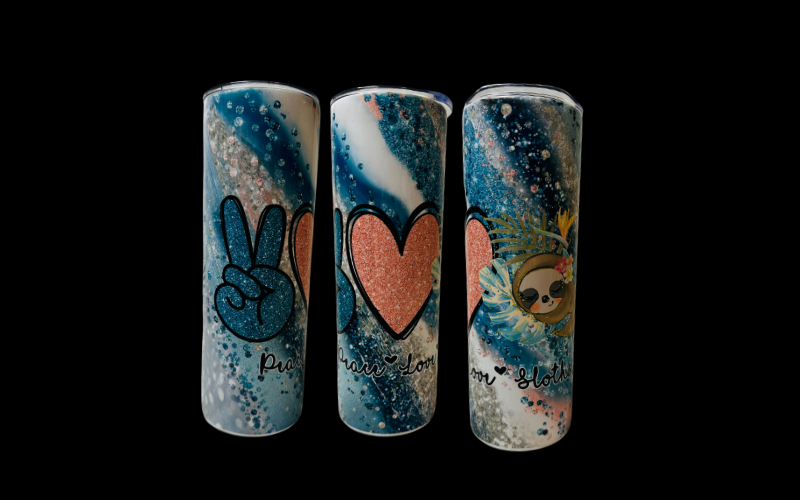 20oz. Sublimation Tumbler--Peace, Love, Sloths