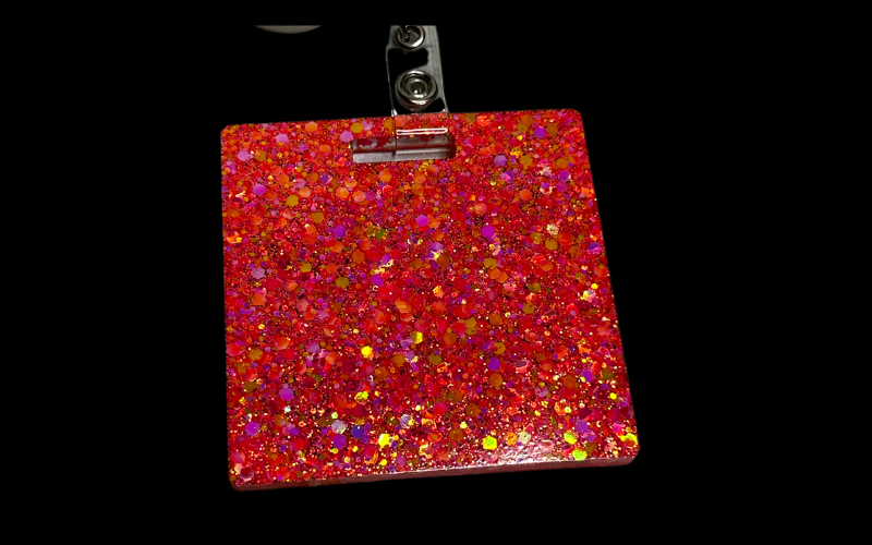 Get ready to add some sparkle to your day with our coral glitter square badge reel holder! Not only does it securely hold your badge, but its eye-catching design will also make you stand out in the office. Say goodbye to boring badge reels and hello to a touch of glitter and glam!