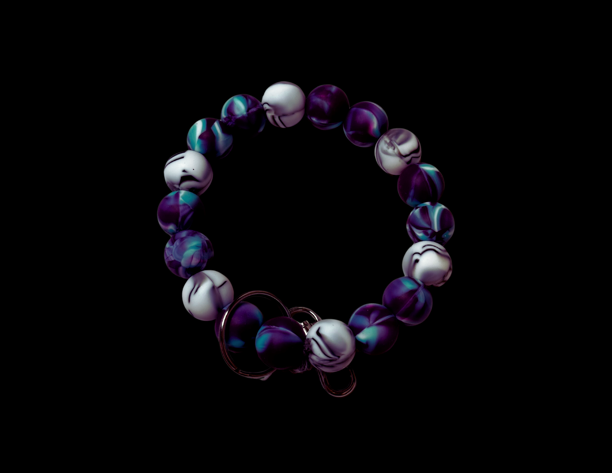 Add a pop of color to your keys with our Bubble Keychain! Featuring a vibrant purple and teal swirl design and a teal silicone bead, this quirky accessory is sure to make a statement. Keep your keys organized in style while showing off your playful side.