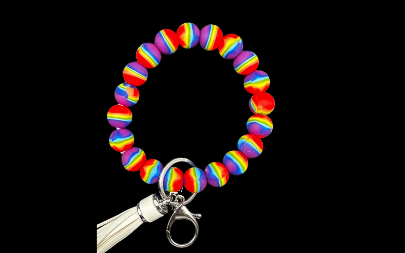 Add a pop of color and fun to your keys with our Bubble Keychain! This wristlet features a colorful rainbow of silicone beads in the shape of a planet, making it both stylish and practical. Never lose your keys again with this eye-catching accessory.