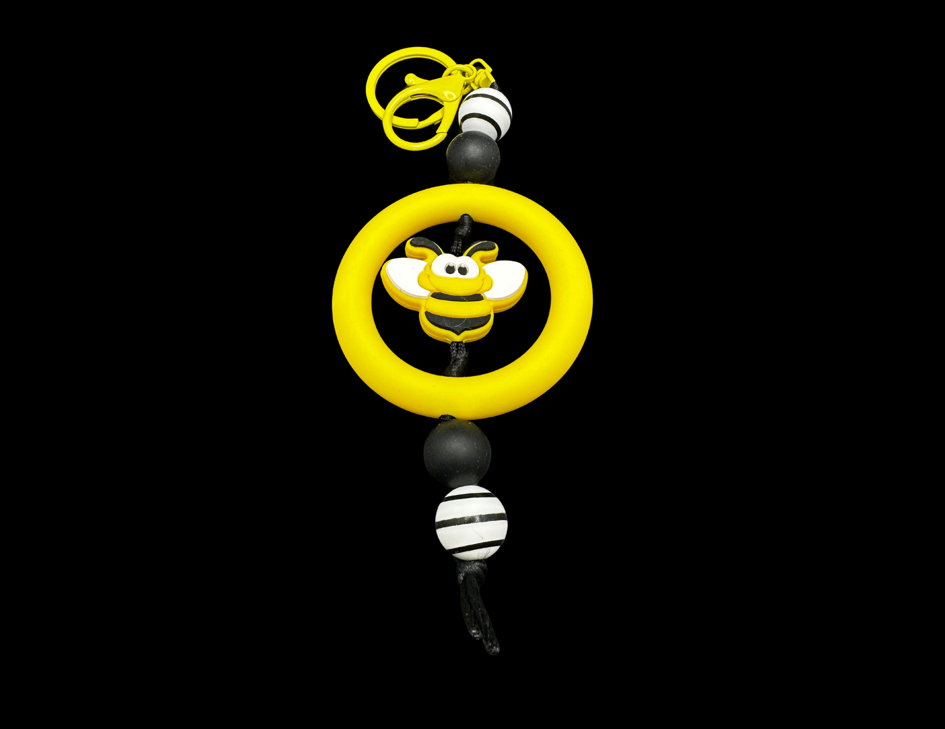 Unleash your buzzworthy style with our Silicone Keychain: Bumblebee! This adorably quirky keychain features a playful bumblebee design that is sure to make a statement on your keys. Bring some fun and humor to your everyday carry with this bee-utiful accessory. (Only 1 exclamation point used)