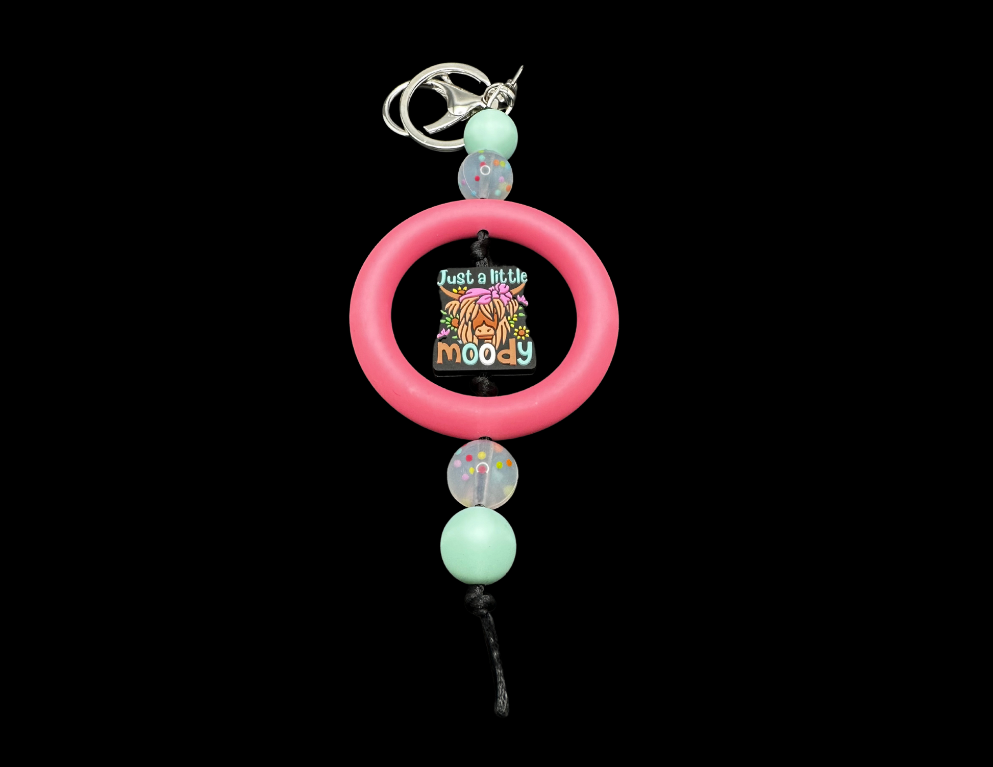 Unleash your moodiness with our silicone keychain, featuring moody beads that change color based on your temperament. Never lose your keys again with this fun and functional accessory. Keep it quirky with Just a Little Moody keychain.