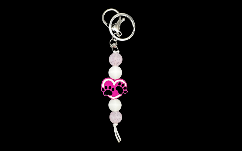 Silicone Keychain--Pink Paw Print Sparkle